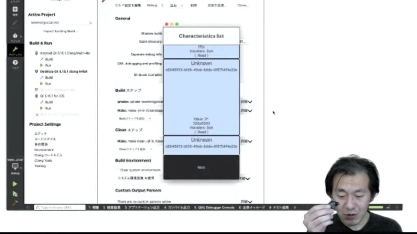 Qtでマルチプラットフォーム対応のアプリ開発」では、(株)芳和システムデザインの宮一さんよる、macOSX上に、androidの開発環境の構築手順と、Qt Creatorによる、Bluetoothデバイスと通信するアプリケーションをビルドして動かして見せてもらいました。クロスプラットフォーム開発は、Qtにより可能なことを初めて知りました。