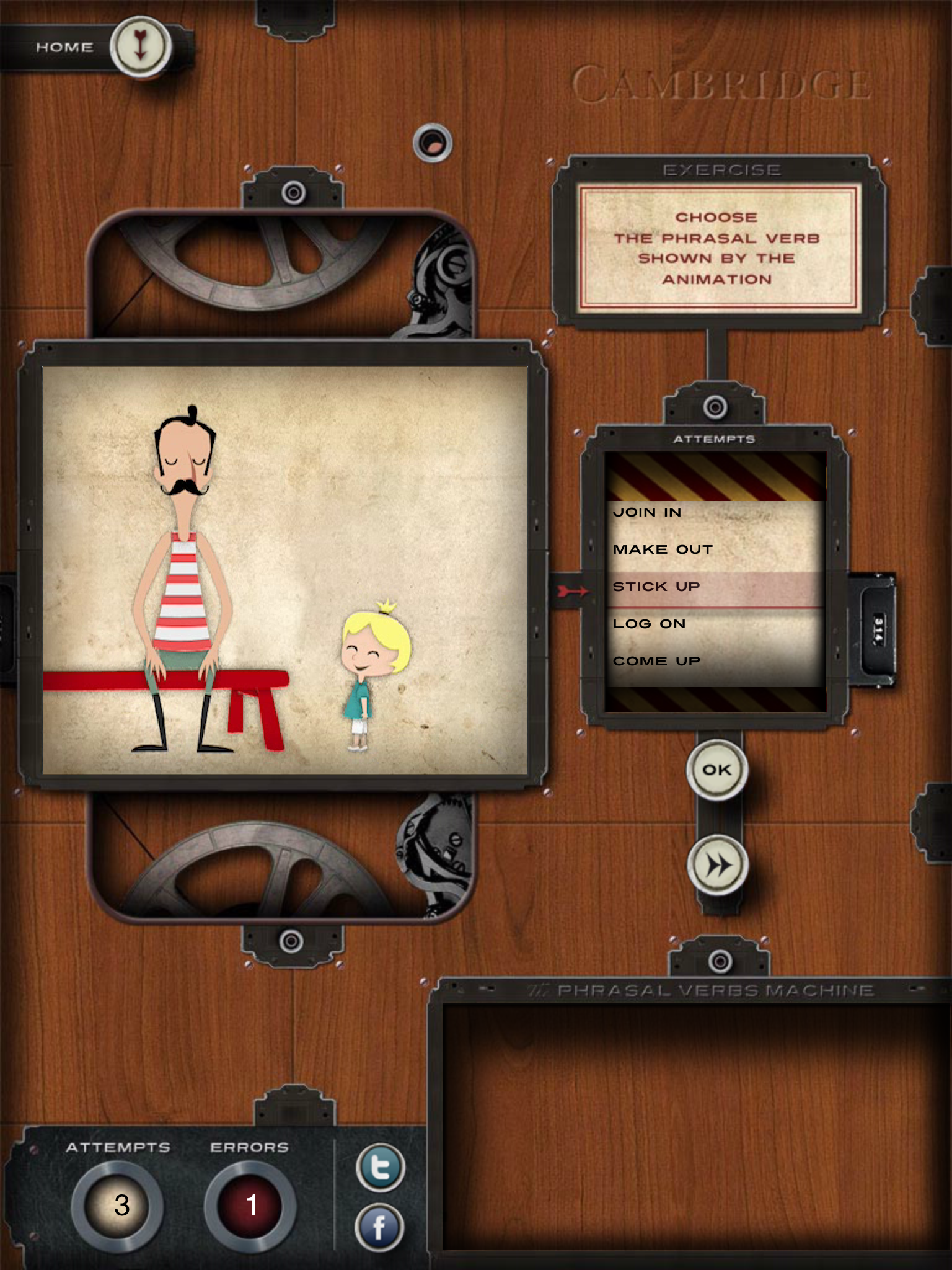 【練習問題の画面では、左の窓に表示されるアニメーションを見て、右の窓内のドラムを回して答えを選択する】