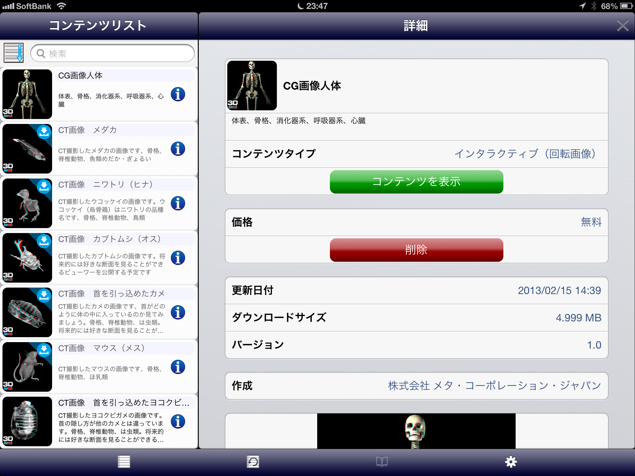 【3Dデータの詳細情報を表示させると、検索用タグやコンテンツタイプ、サイズ、作成者などを閲覧することができる】